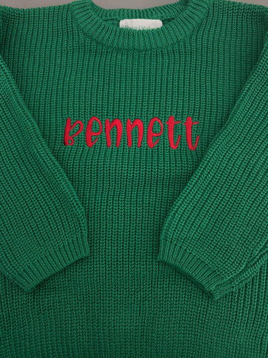 Custom Name Christmas Green Knit Sweater